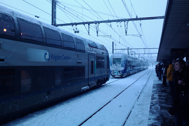 – un train TER (bombardier bleue à 2 étages) en panne à Rambouillet, les passagers sont dedans (sachant que ces trains ne sont pas bien chauffés, ils sont même plutôt « réfrigérés »); je ne sais la raison, mais les passagers ne sont pas inviter à rejoindre le quai (soit juste en face (quai B), soit juste derrière (quai A)