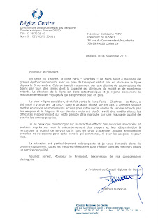 La Région Centre signale les disfonctionnements de la ligne au PDG de la SNCF