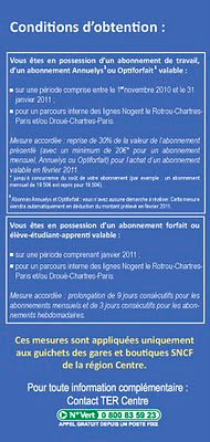 Conscient de la gêne occasionnée, j’ai le plaisir de vous informer que la SNCF met en place une mesure commerciale exceptionnelle pour le mois de février 2011.
