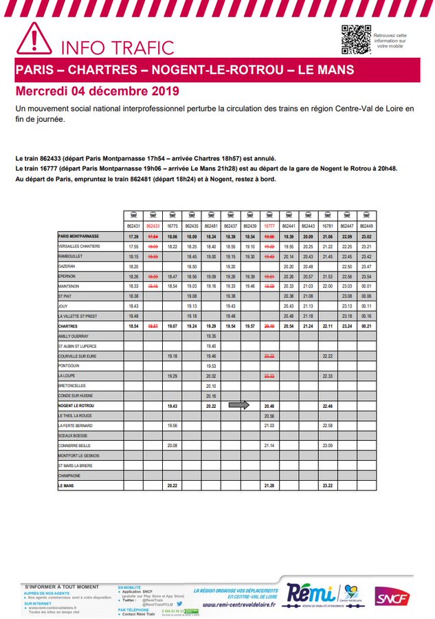 Le Train 862433 ne circulera pas et le 16777 ne circulera qu’entre Nogent et Le Mans.