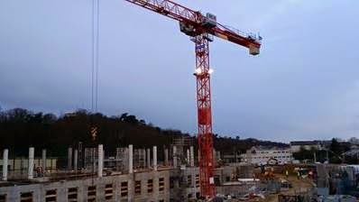 La flèche de la future grue vient d’arriver sur le chantier. Pour le moment en position horizontale, elle sera montée à partir de demain, mardi 10. La grue mesurera 90 mètres de haut.