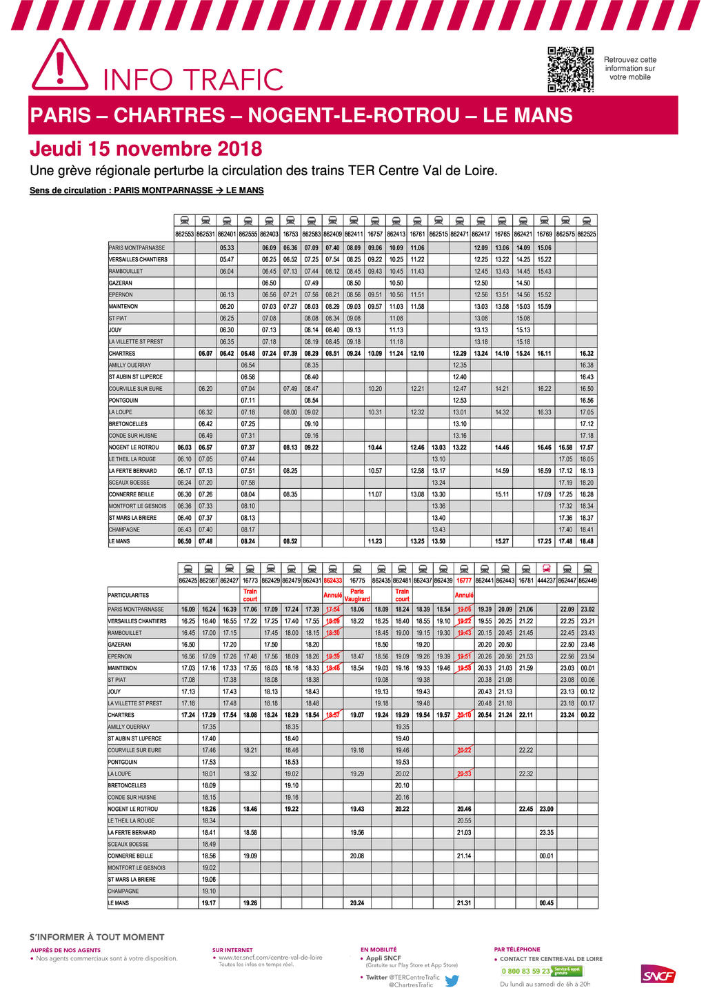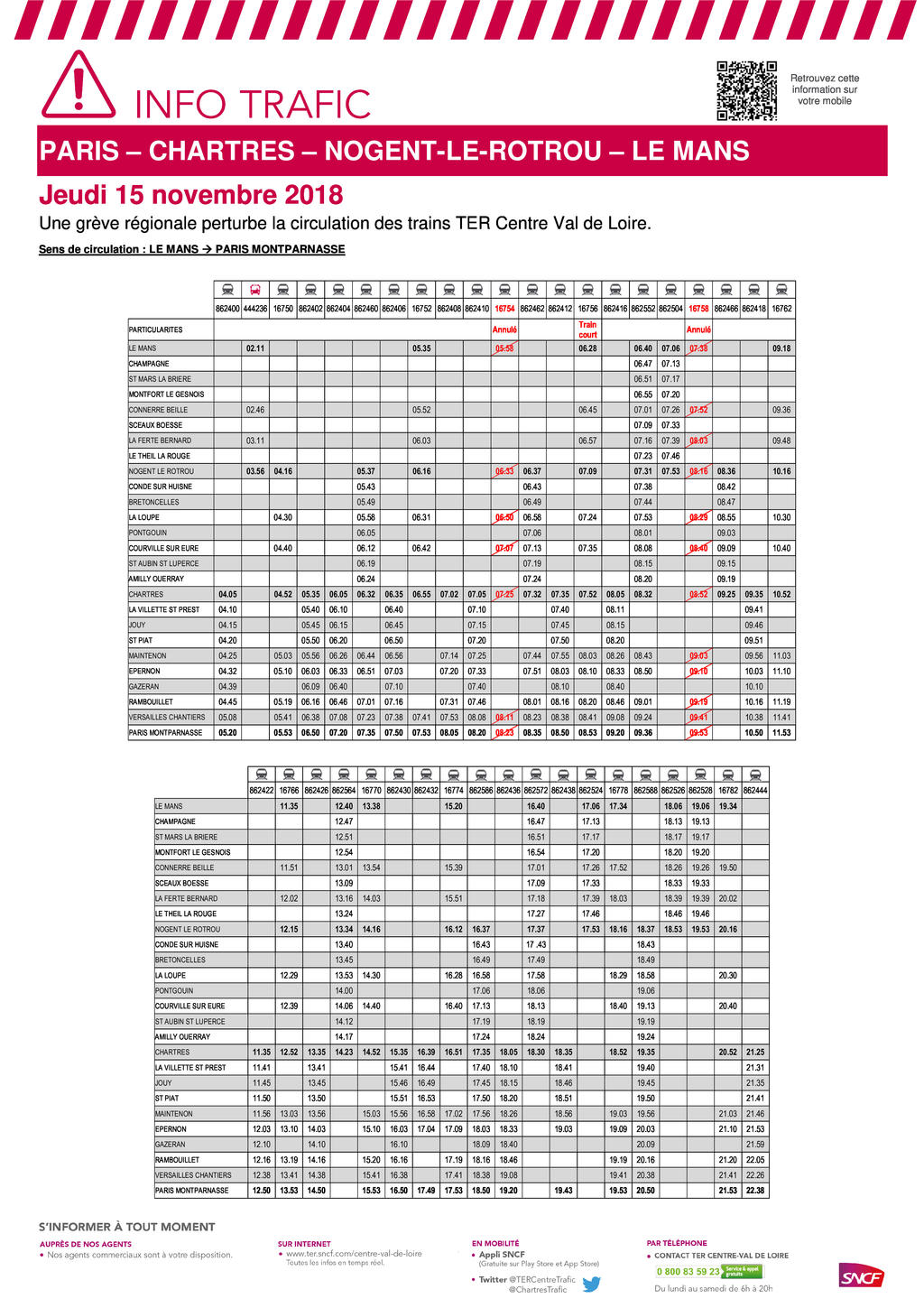 Voici le plan de transport pour la ligne PCLM pour la journée du 15 novembre 2018.