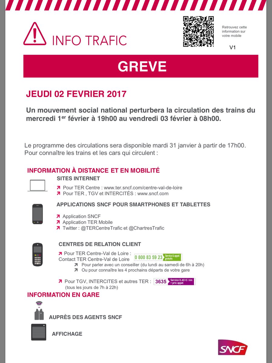 Mise à jour du 31/01/2017 : « Votre ligne TER, Paris-Chartres-Le Mans, ne sera pas touchée par la grève prévue ce jeudi. La circulation sera normale. » Source Twitter @ChartresTrafic