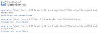 Combien de fois un train annoncé en retard part finalement à l’heure ou un train annoncé à l’heure a du retard! L’info à la SNCF c’est aussi fiable que les horaires des trains! Pourtant ce matin l’équipe du TER Centre nous vantait encore cette information en temps réel en gare de Chartres…