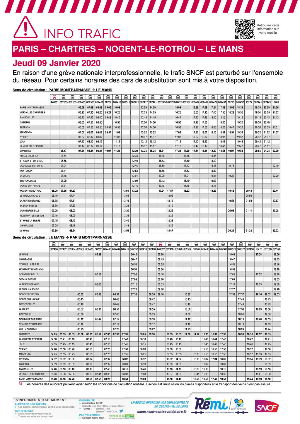 Voici le plan de transport prévu de la ligne PCLM pour la journée du 09 janvier 2020