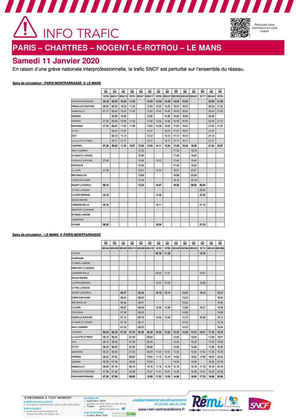 Voici le plan de transport prévu de la ligne PCLM pour la journée du 11 janvier 2020