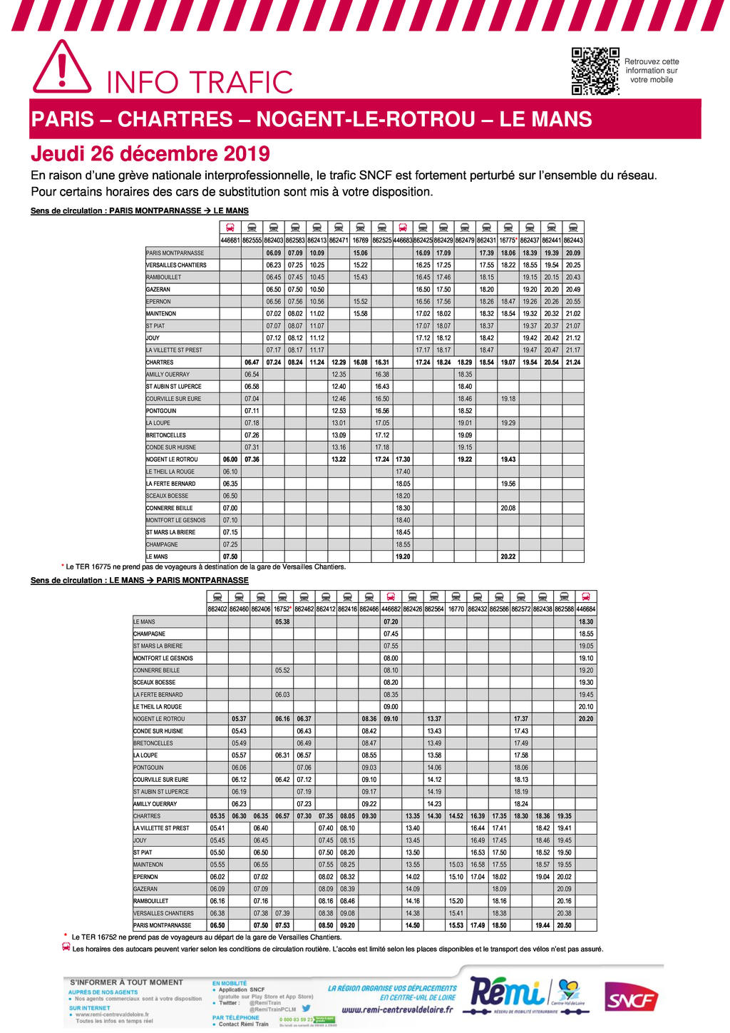 Posted on 26 décembre 201925 décembre 2019 by Paris-Chartres Mouvement Social du 26 décembre 2019 Voici le plan de transport pour la journée du 26 décembre 2019 Plan de transport pour la journée du 26 décembre 2019
