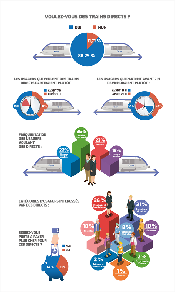 Une enquète a été menée via un questionnaire concernant les trains directs Chartres<->Paris. Les résultats de cette enquète a été publiée sur le site www.chartres.fr